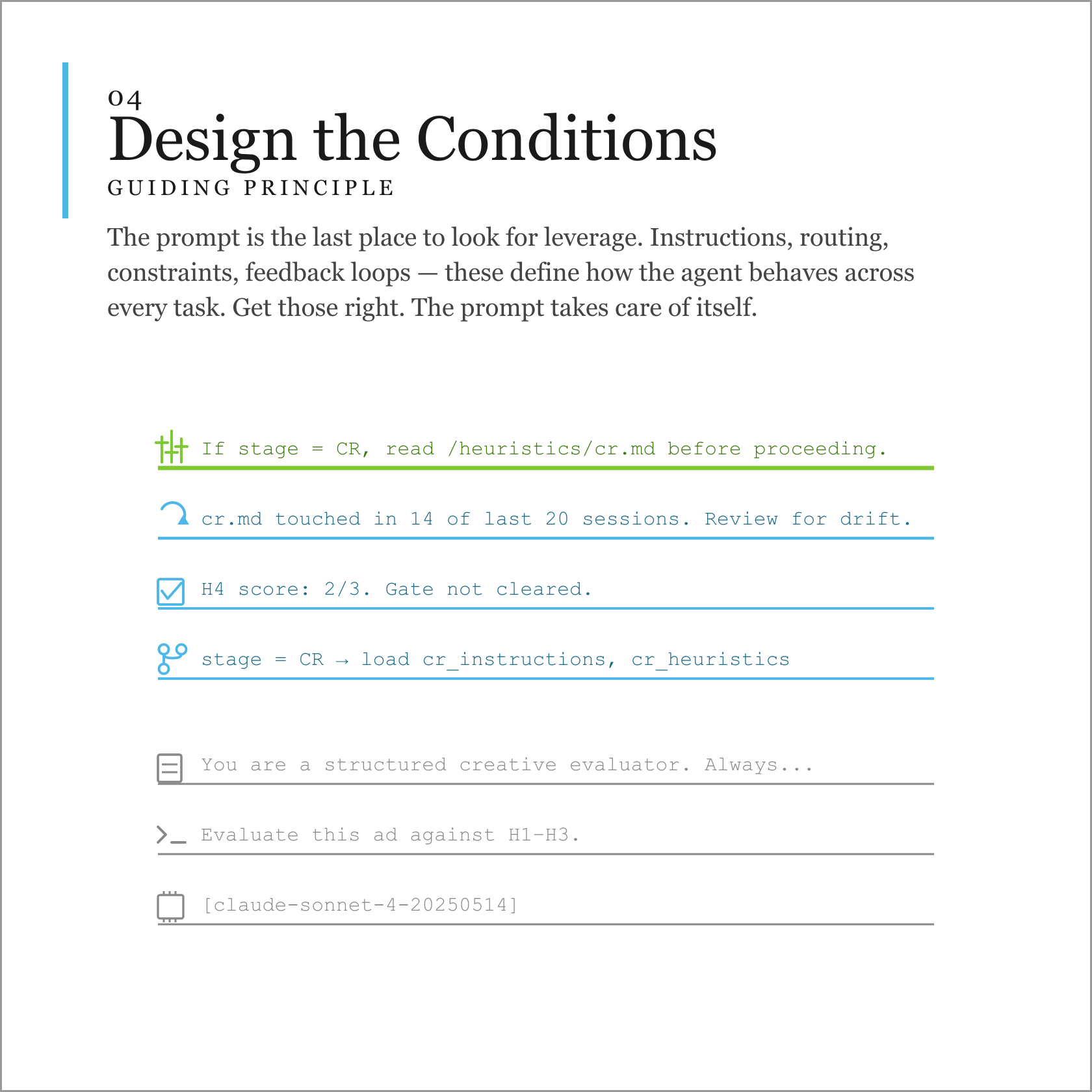 I design systems that serve people's goals — the interaction models people experience and the conditions that govern how agents behave when nobody is watching. Human goals have always been the upstream constraint. The material keeps changing. The discipline doesn't.